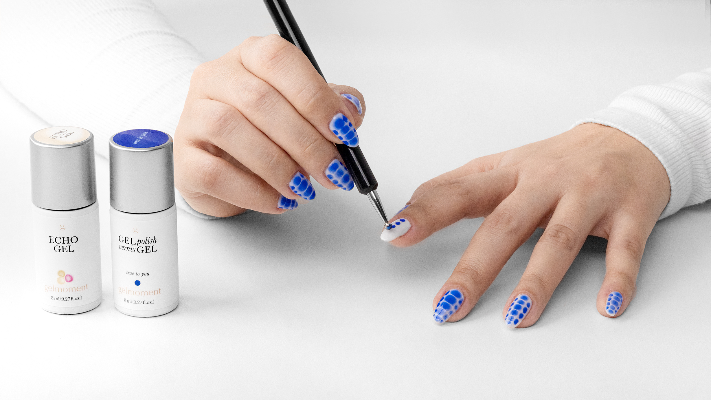 Our echo gel allows you to create beautifully elaborate nail art designs like never before, from intricate florals to aura nails to delicate abstract wisps and more! Let your gelmoment creativity set live up to its full potential and elevate your DIY nail art to levels you’ve only dreamed of—until now. The possibilities with echo gel are virtually limitless!