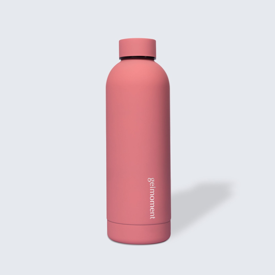 An additional plus of our water bottles is their distinct design. They’re available in two colours—matte pink & matte black—both tastefully branded with the gelmoment logo along the side & on the cap. The matte finish is super soft, and adds such a gorgeous, unique touch to this indispensable product.